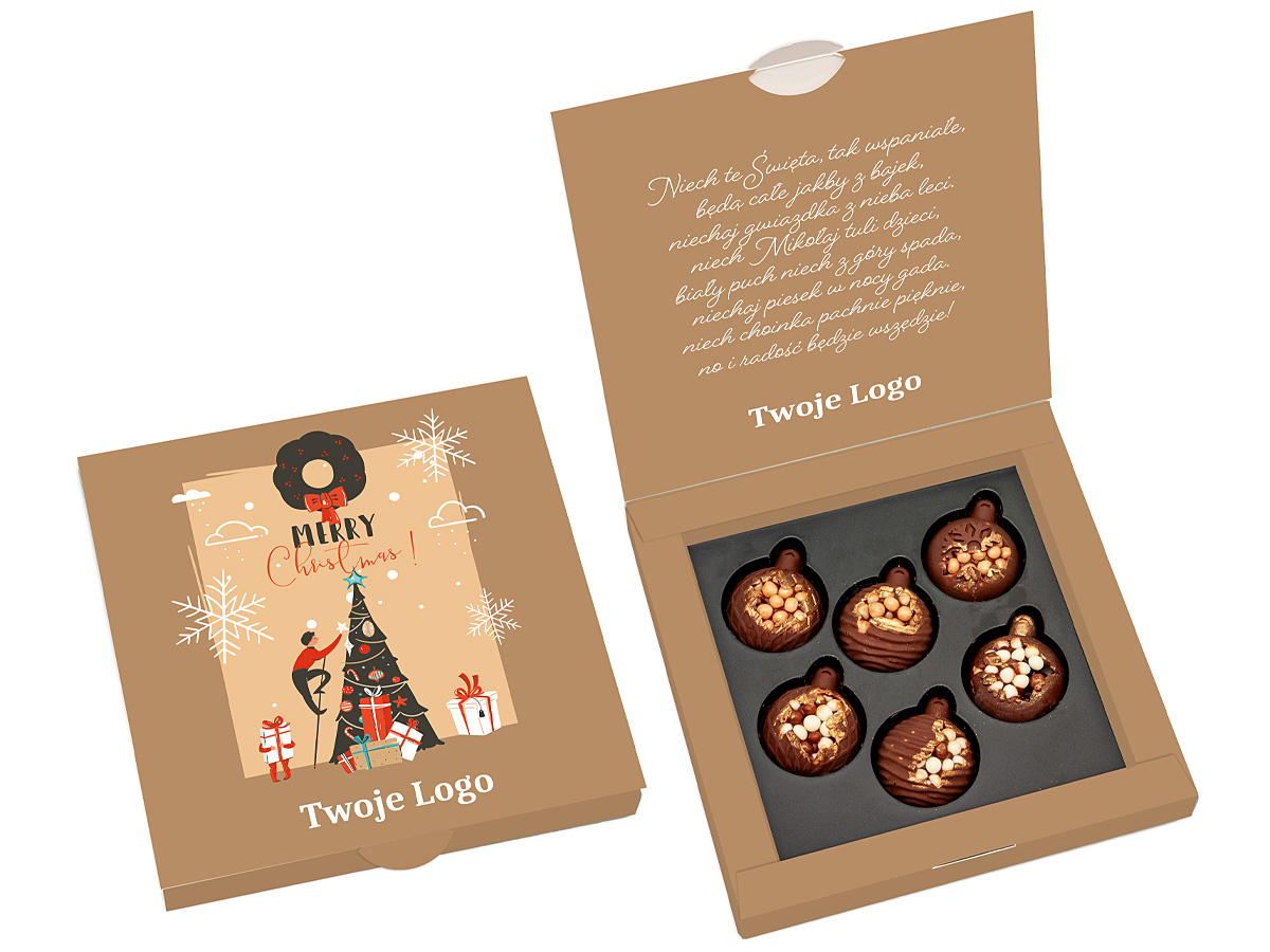 • Elegancka Bombonierka zawierająca 6 niepowtarzalnych bombek
