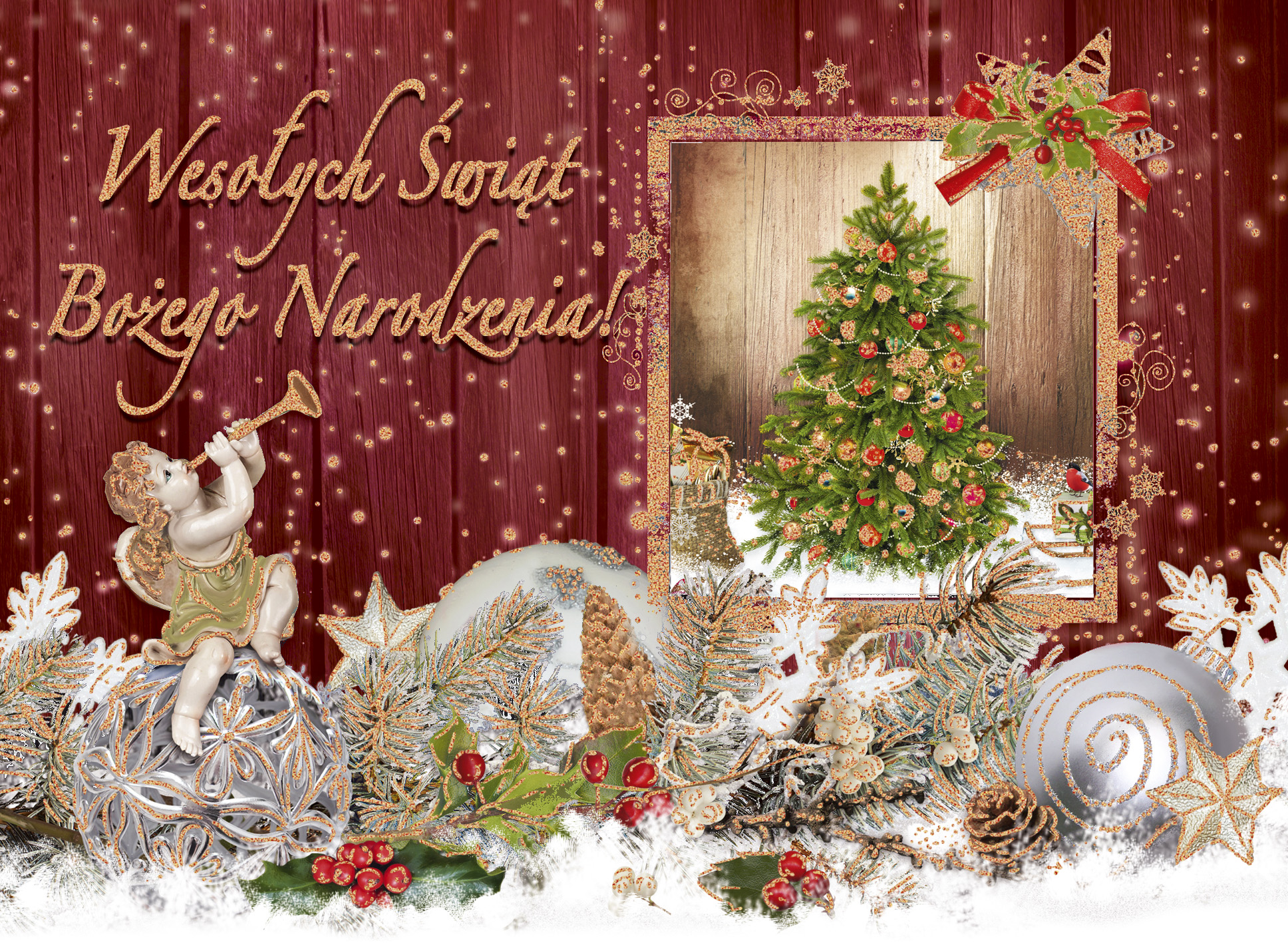 - elementy zdobione brokatem