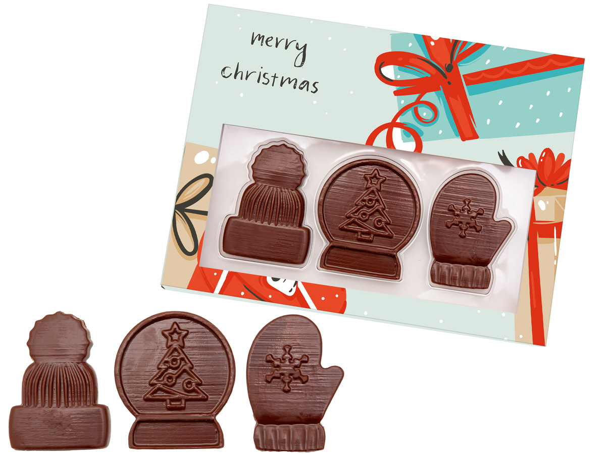 - Zestaw z 3 czekoladkami w zimowych kształtach